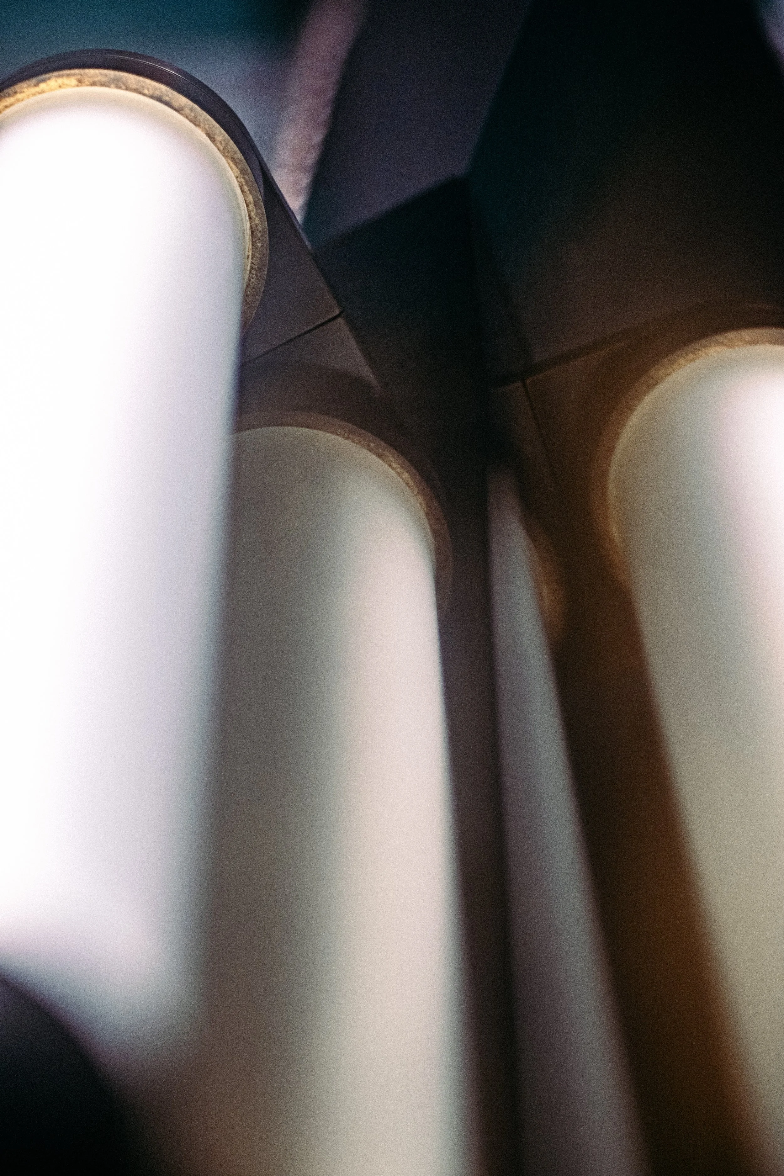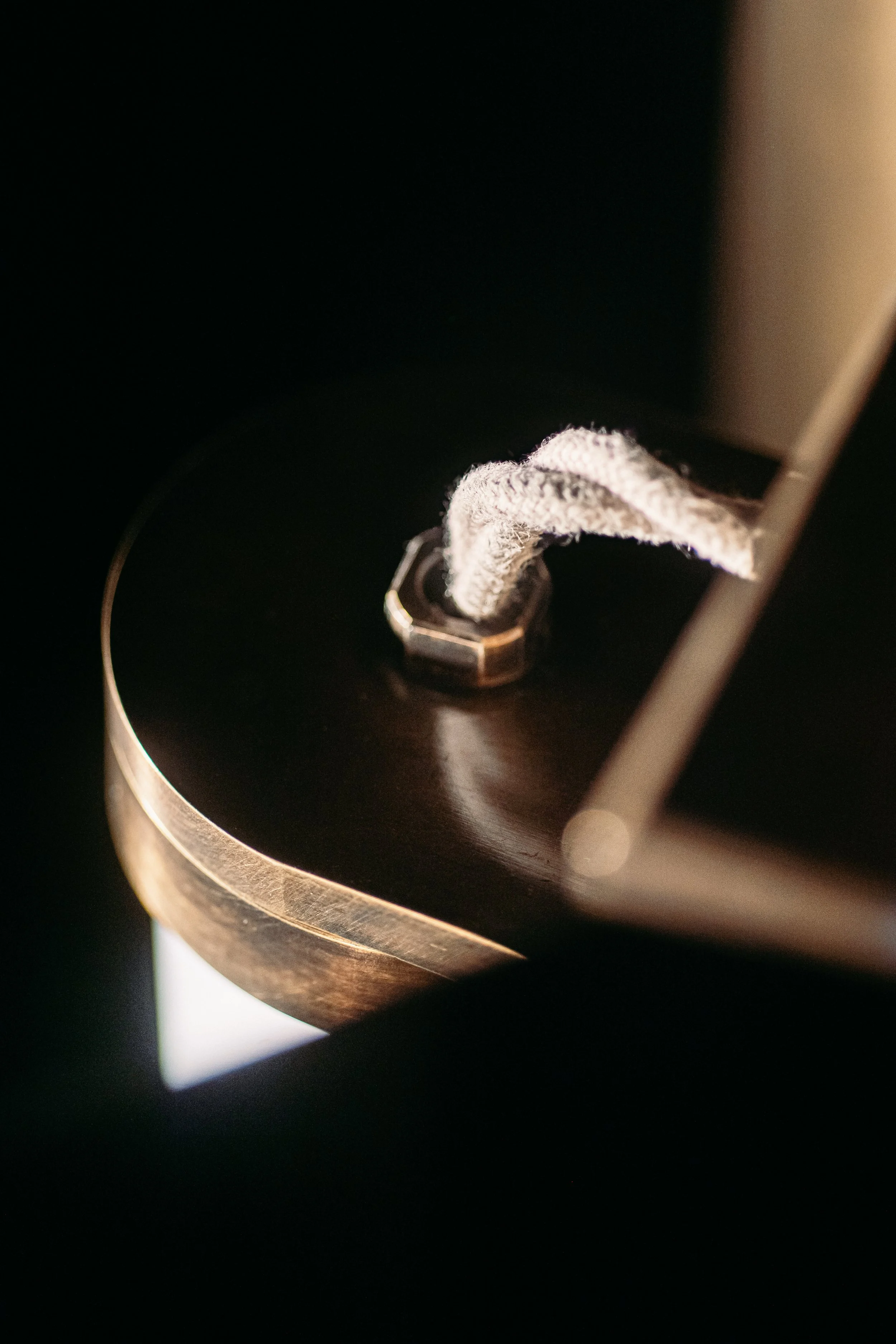 Patinated brass and sandblasted borosilicate glass double sided pendant